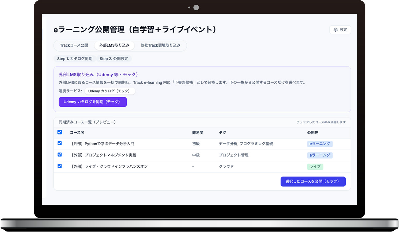はい、可能です。Trackは「拡張ハブ(Extend)」として設計されており、APIを用いて既存のTMSやLMSとシームレスに連携します。既存システムをリプレイスすることなく、解像度の高い「実務スキルデータ」とAIの「インテリジェンス」を組織に付加することができます