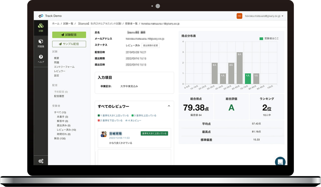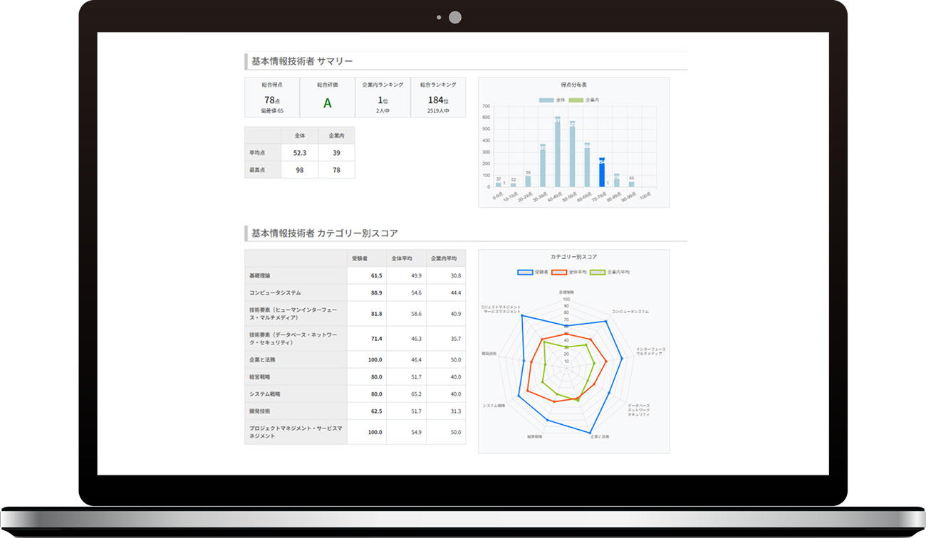 実務に近いスキルアセスメントを通じて、候補者の能力を定量的に評価します。ソースコードの自動採点とコード解析により、単なる正誤だけでなく問題解決プロセスも分析可能です。履歴書や面接だけでは見えにくい実務能力を、客観的な指標として可視化します。