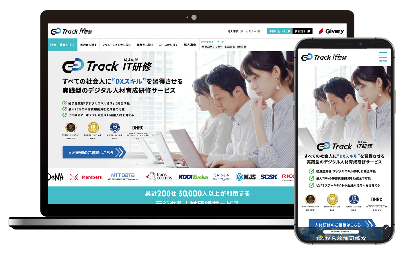 Track LMSは、実務スキルを磨ける企業向けデジタル育成基盤です。独自カリキュラム/研修運営の柔軟なカスタマイズに加え、学習履歴・習熟度を可視化し戦略的人材育成を支援します。
