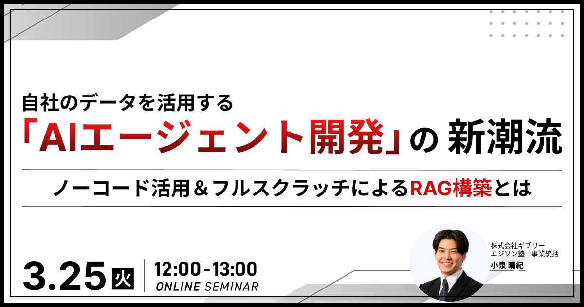 本セミナーでは、意思決定者様向けにノーコードAIエージェント(例:Dify等)とフルスクラッチ(完全自社開発)によるAIエージェント開発の特徴を比較し、適切な選択の指針やAI人材育成のポイントを解説します。