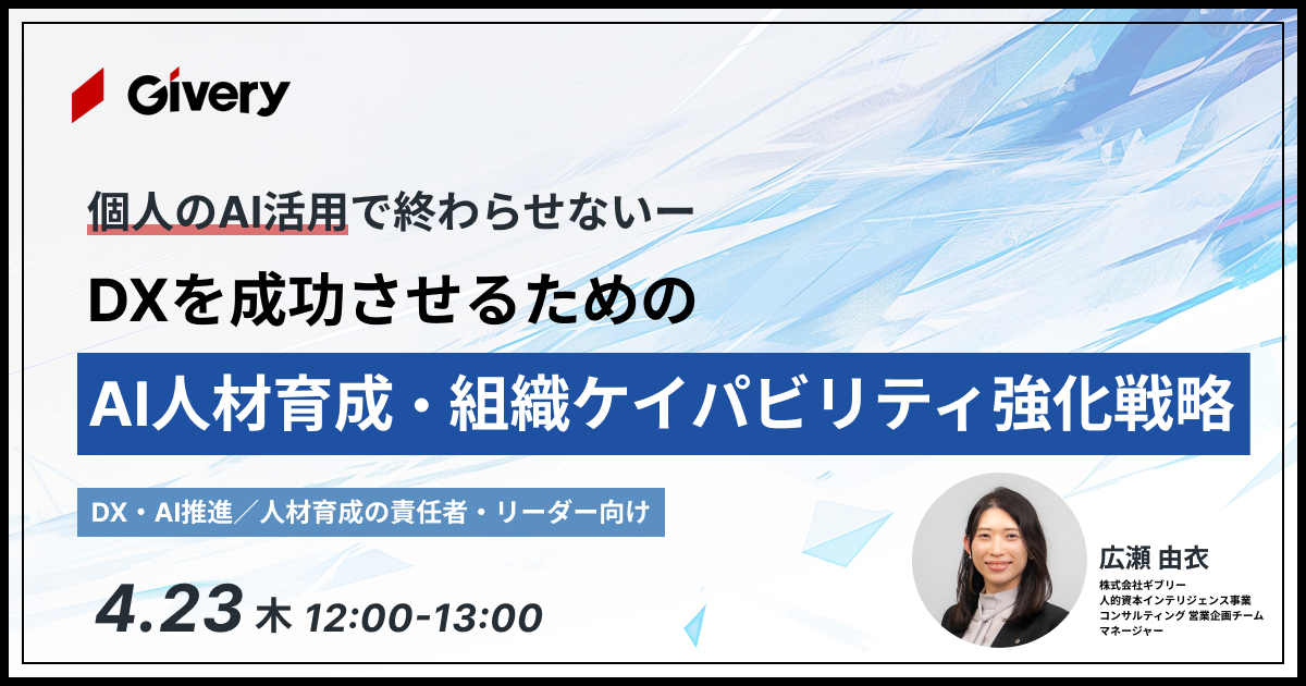 今回ご提供いただく個人情報は、株式会社ギブリーと本セミナーの共催企業が取り扱い、各社の個人情報保護方針に基づき厳重に管理いたします。