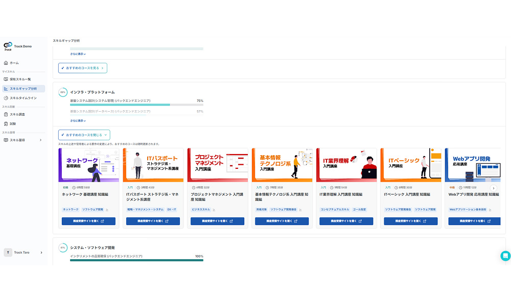 「知っている」を「できる」に変える、アウトプット重視の実践演習環境(Track LMS)を提供。 さらに、専門家による現場でのOJT伴走支援を通じて、実務への確実なスキル定着とプロジェクトの成功をサポートします。