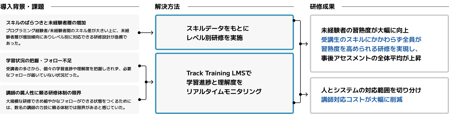 「データ分析 基礎講座 実践編」は、デジタルスキル標準に準拠したTrack法人向けIT研修のリスキリング講座です。検定や自然言語処理の基礎を学び、ケーススタディを通じてデータ分析の実践力を養います。