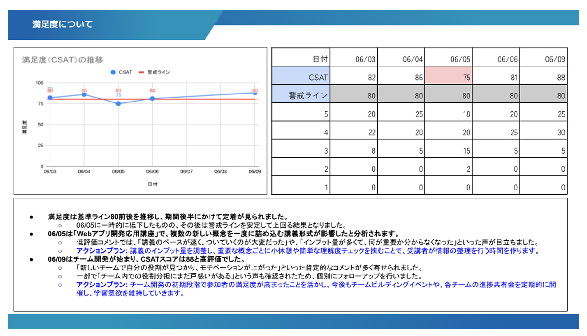 研修全体の成果をまとめた最終レポートをご提出。今後の育成計画にも活用いただけます。